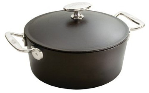 - Tight-fitting cast-iron lid with stainless-steel knob; oven-safe